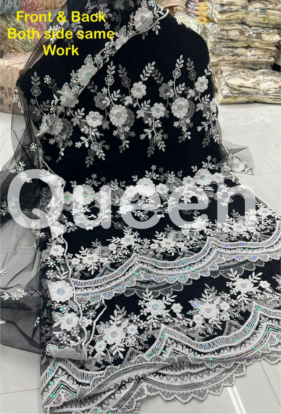 *Dupatta.* Pure Net with fancy embroidery