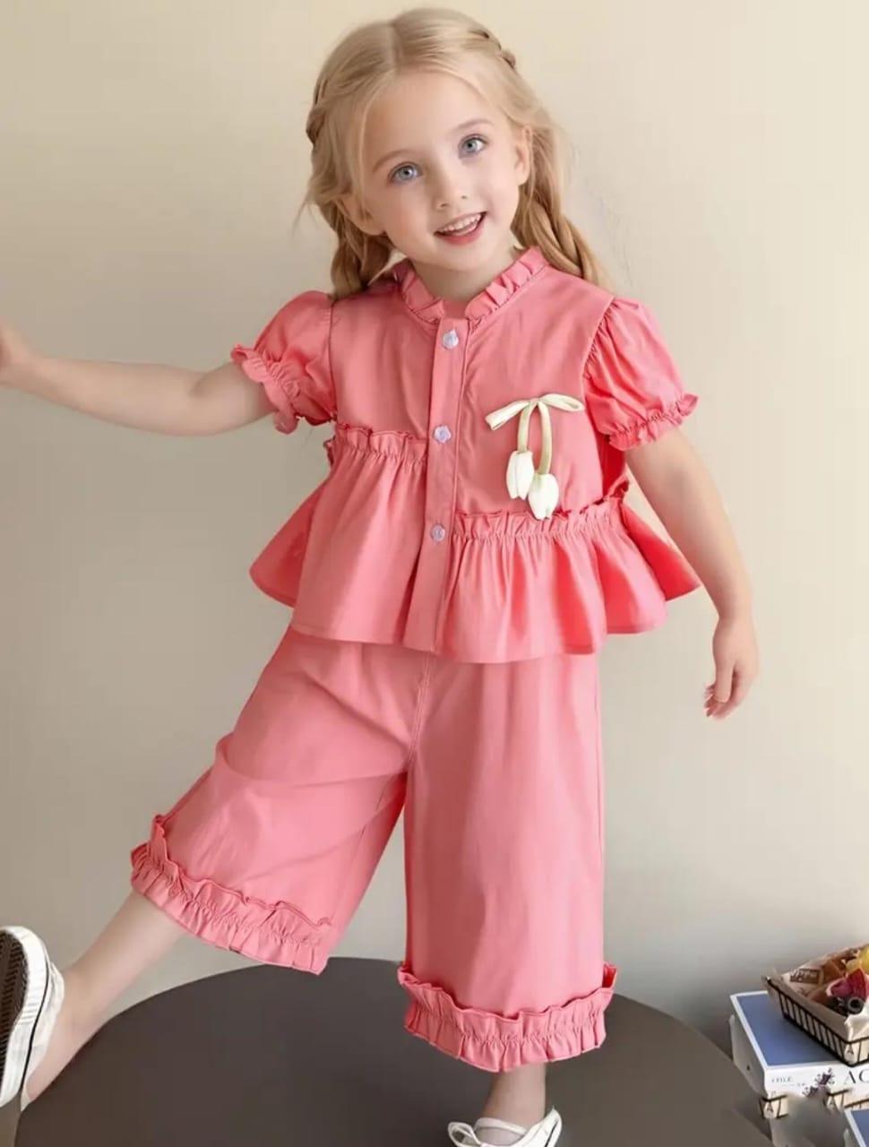 *TULIP BOWKNOT LACE STRAIGHT PANT WITH PUFF SLEEVES SET*