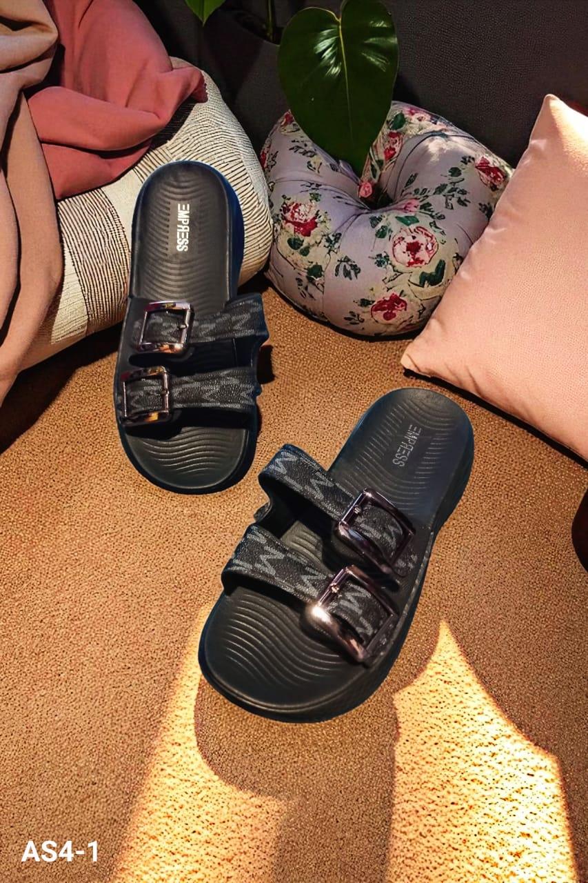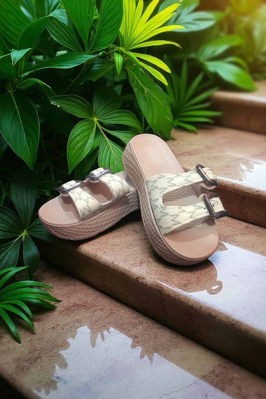 🔸Description: "Comfortable and stylish ladies high sliders with two adjustable buckles for a secure fit. Perfect for daily wear with added height and support."