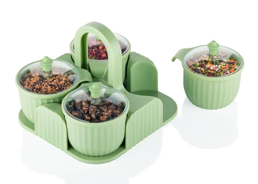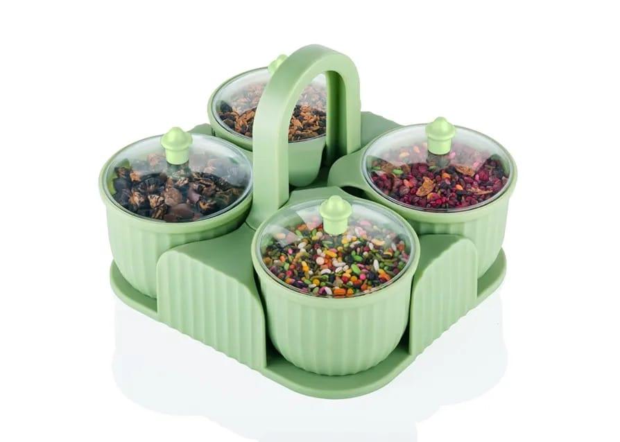 Dry Fruit Box 4 pc Jar Set Aachar Pickle Container Mukhwas Tray Dining Spice Stand ABS Plastic Chocolate Mouth Freshener Sweets Masala Storage For Gift Home kitchen -Pista Colour