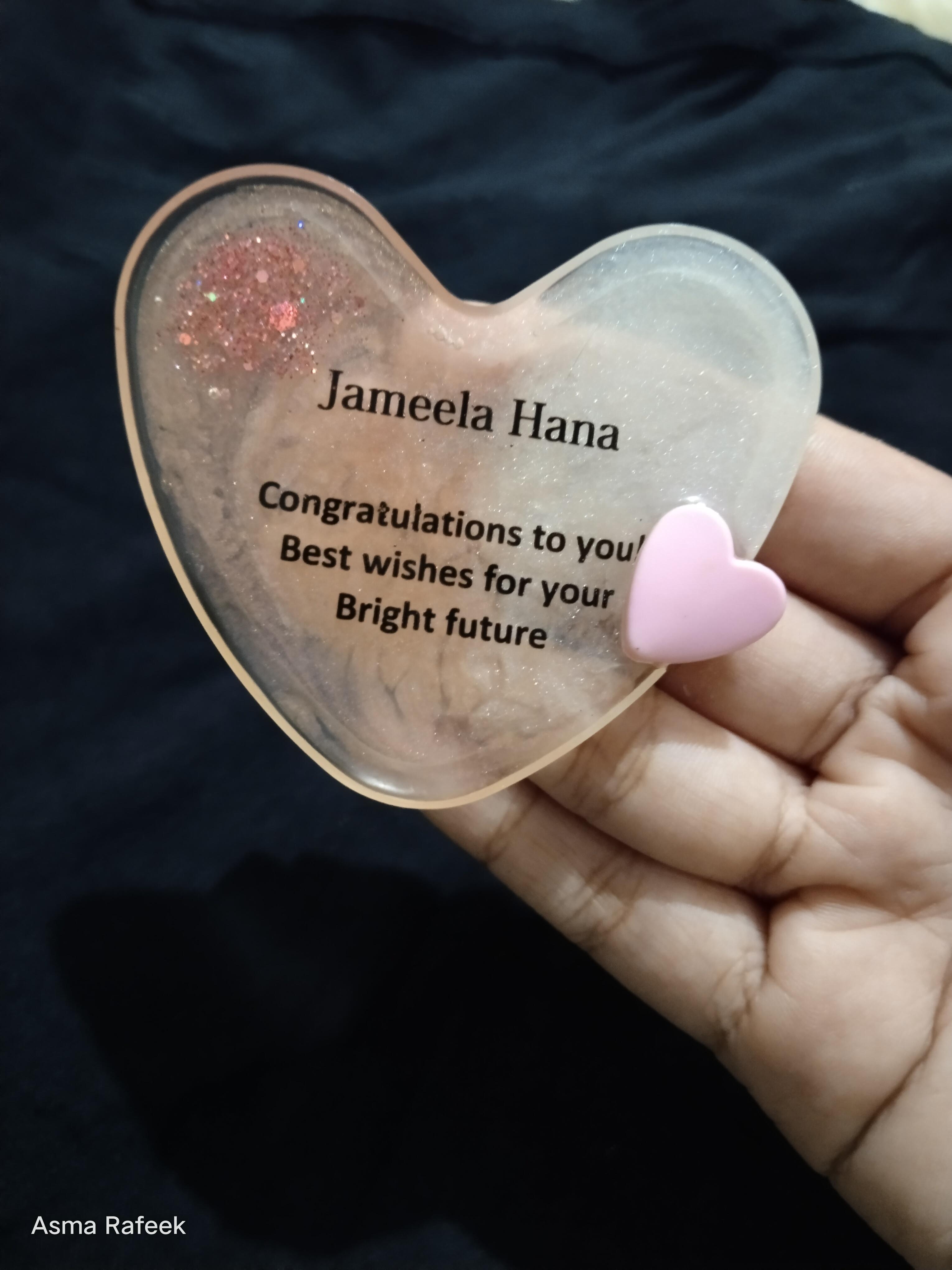 Customized wish can be written on heart ornament.