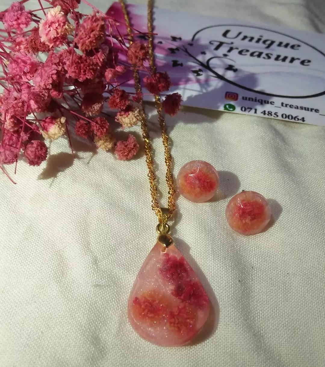 Resin pendent with chain and earring