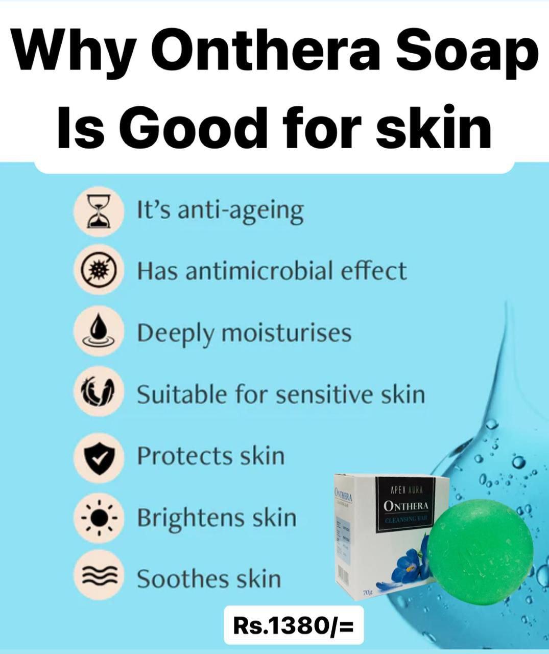 🧼 *Onthera Cleansing Bar* என்பது ஒரு இயற்கை சுத்திகரிப்பு சோப்பாகும். இது சருமத்தை பாதுகாக்கவும், நன்னீராக்கவும் வடிவமைக்கப்பட்டுள்ளது.