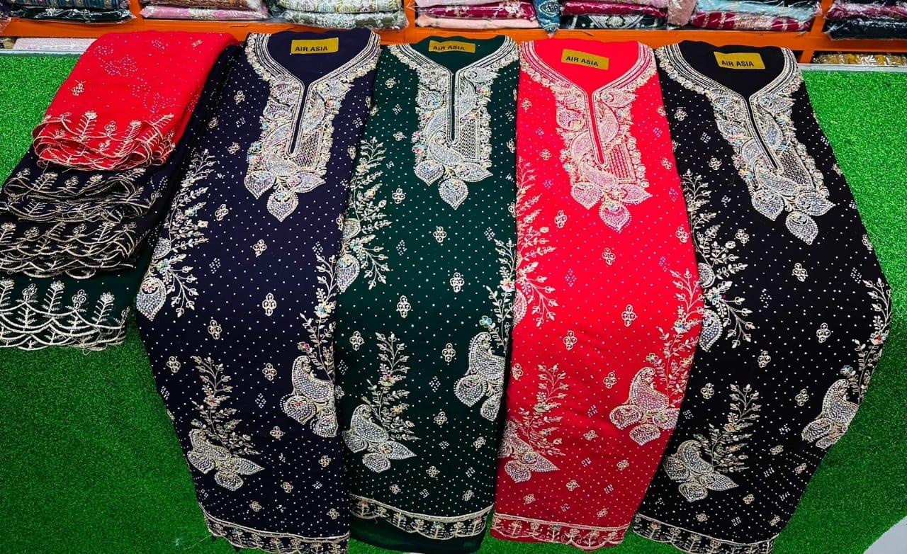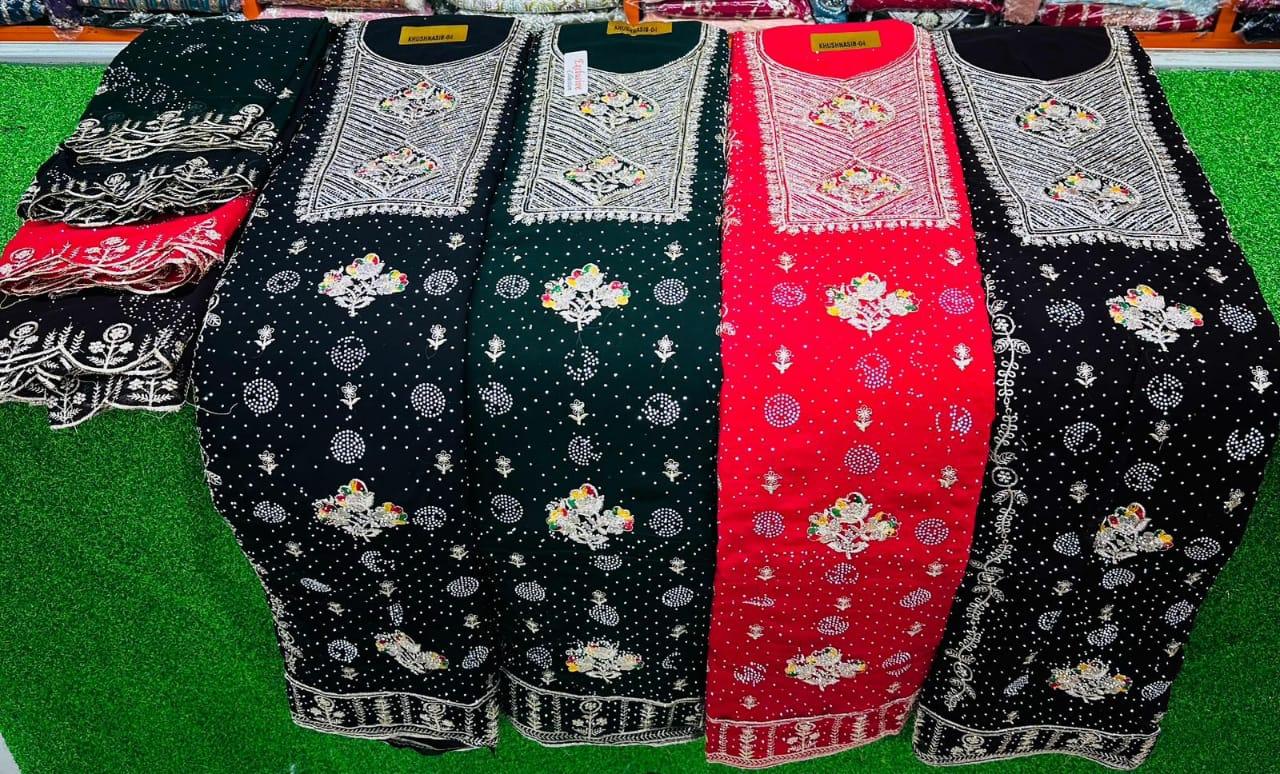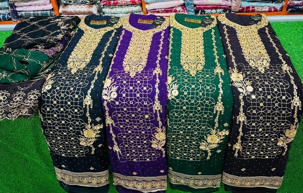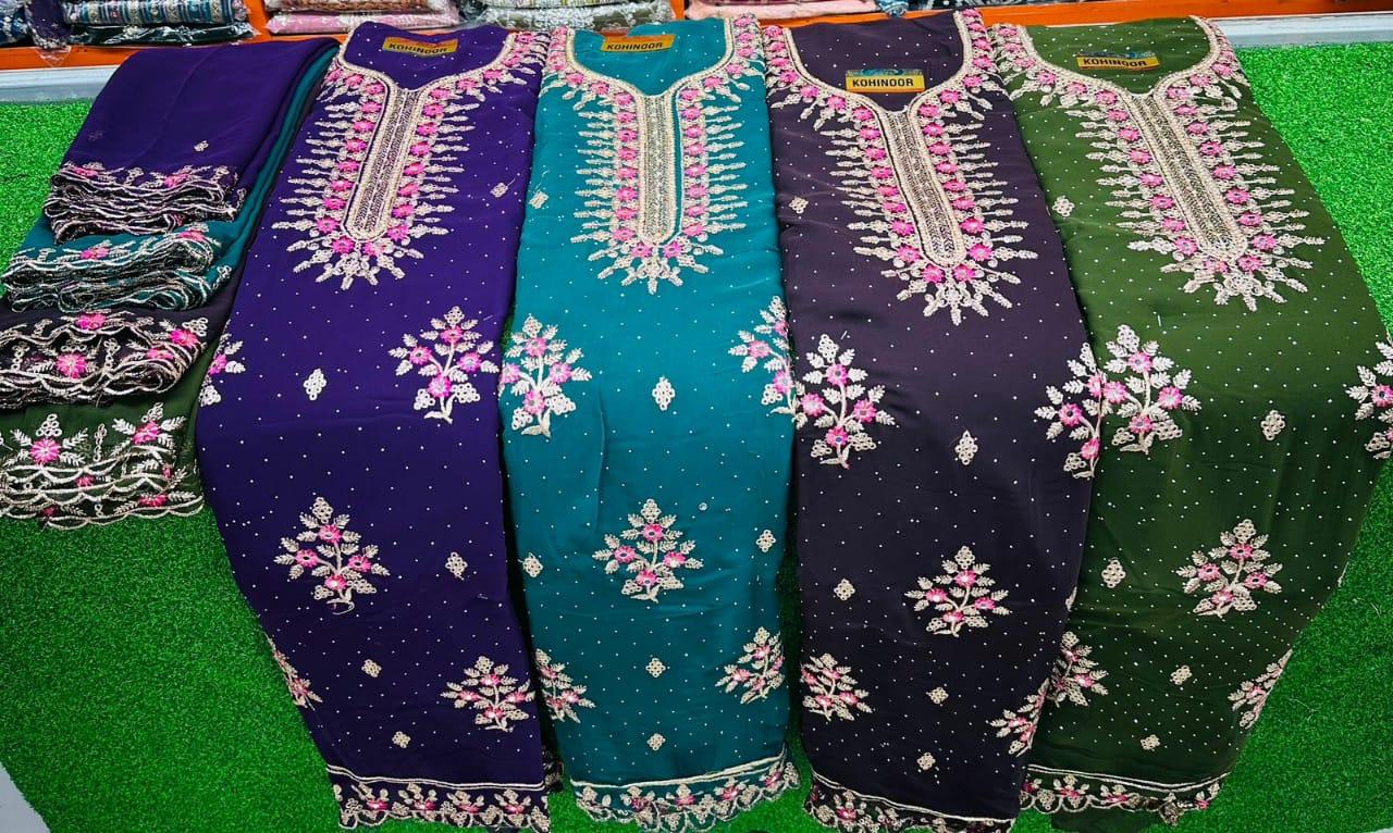 CHIFFON EMBROIDERY SHALWR WITH SHAWLS AND