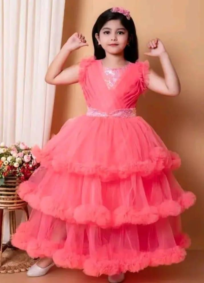 Girls fared net frock in attractive clrs