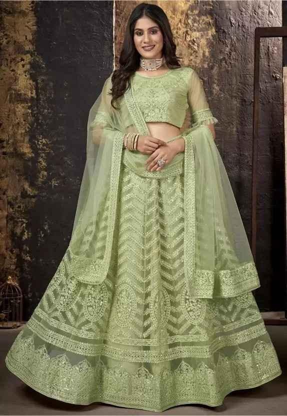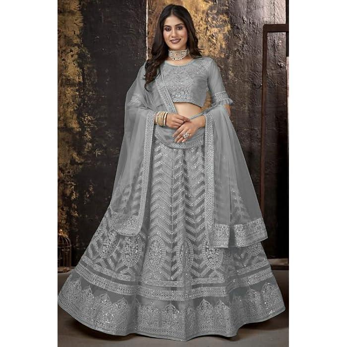 *π*π LEHNGA:NET WITH CHAIN DESIGN WORK AND CANVAS PATTA BORDER*