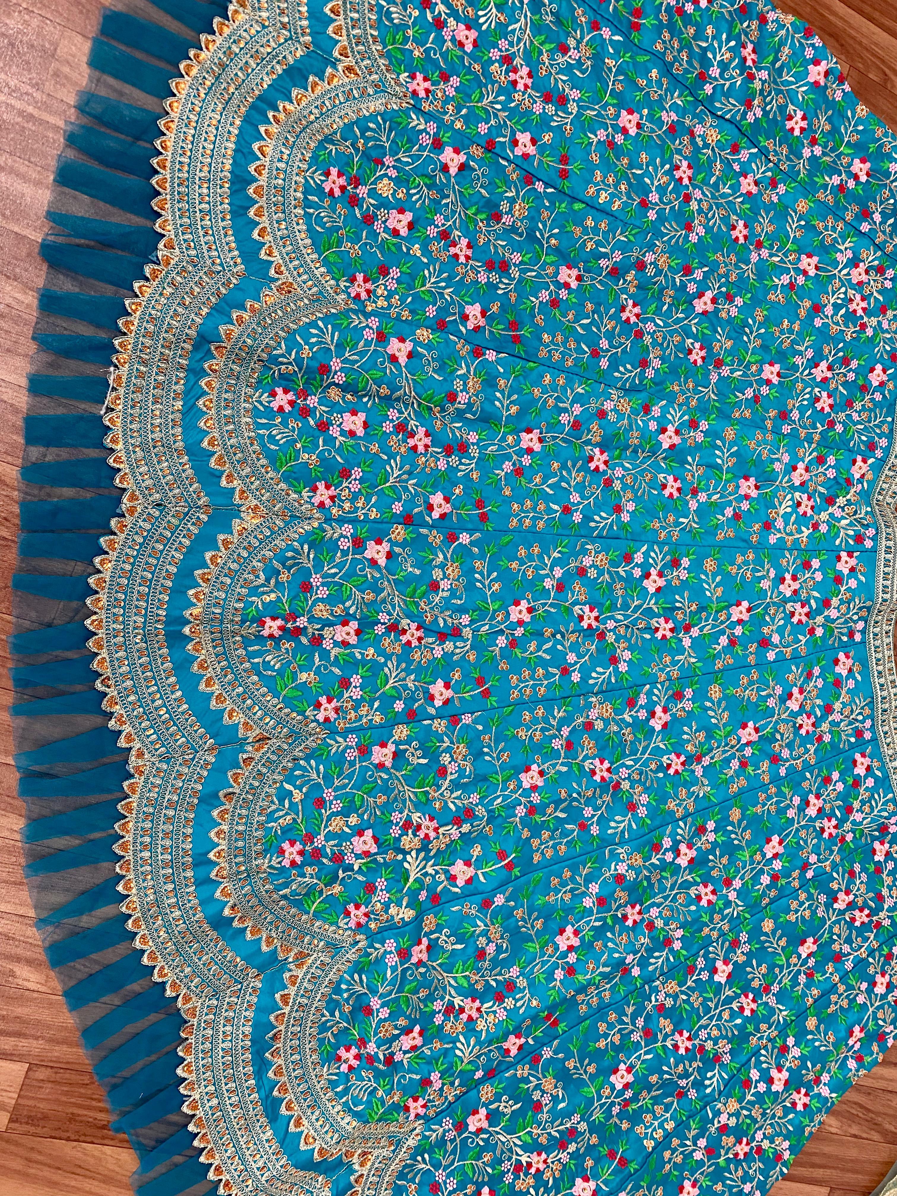 Aqua blue colour Embroidered Attractive Party Wear Silk Lehenga choli has a Regular-fit and is Made From High-Grade Fabrics And Yarn.