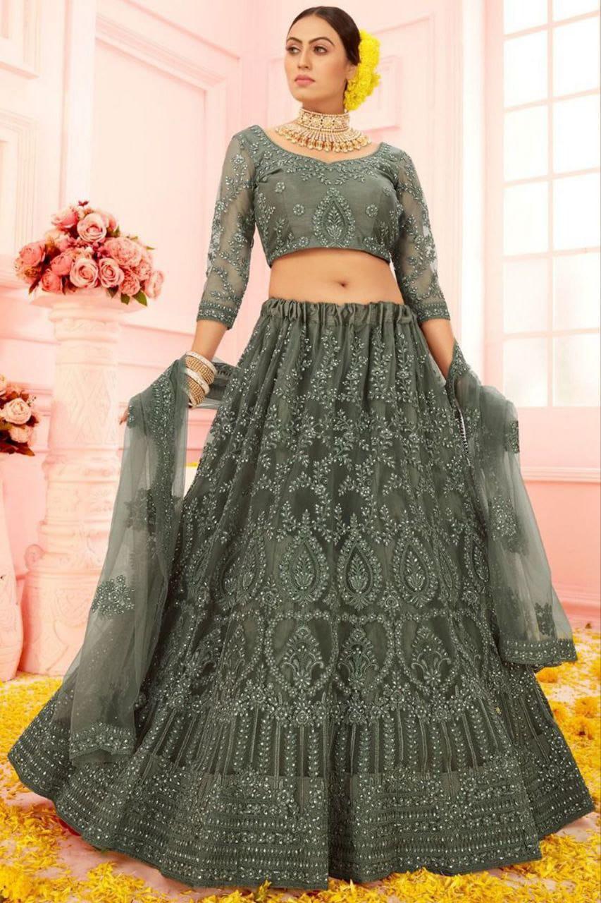 *✨👗 LEHNGA:NET WITH CHAIN DESIGN WORK✨*