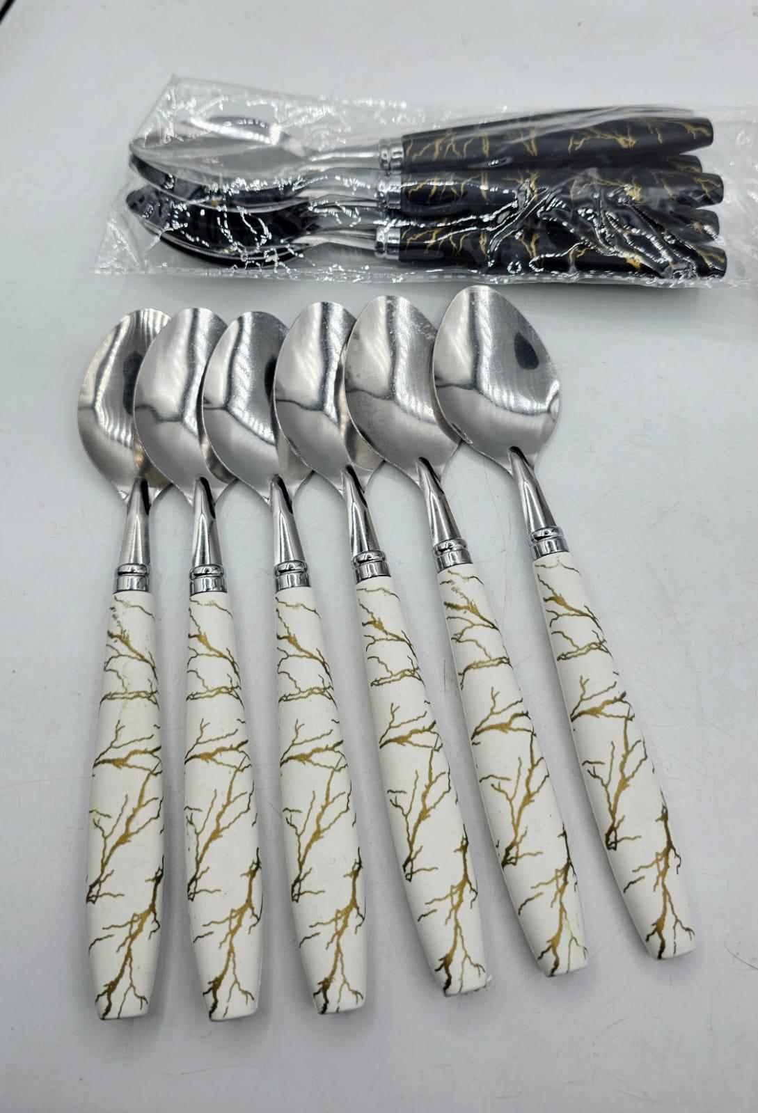 Ceramic Finish Style Stainless Steel Premium Table Spoon Set of 6 Pieces.