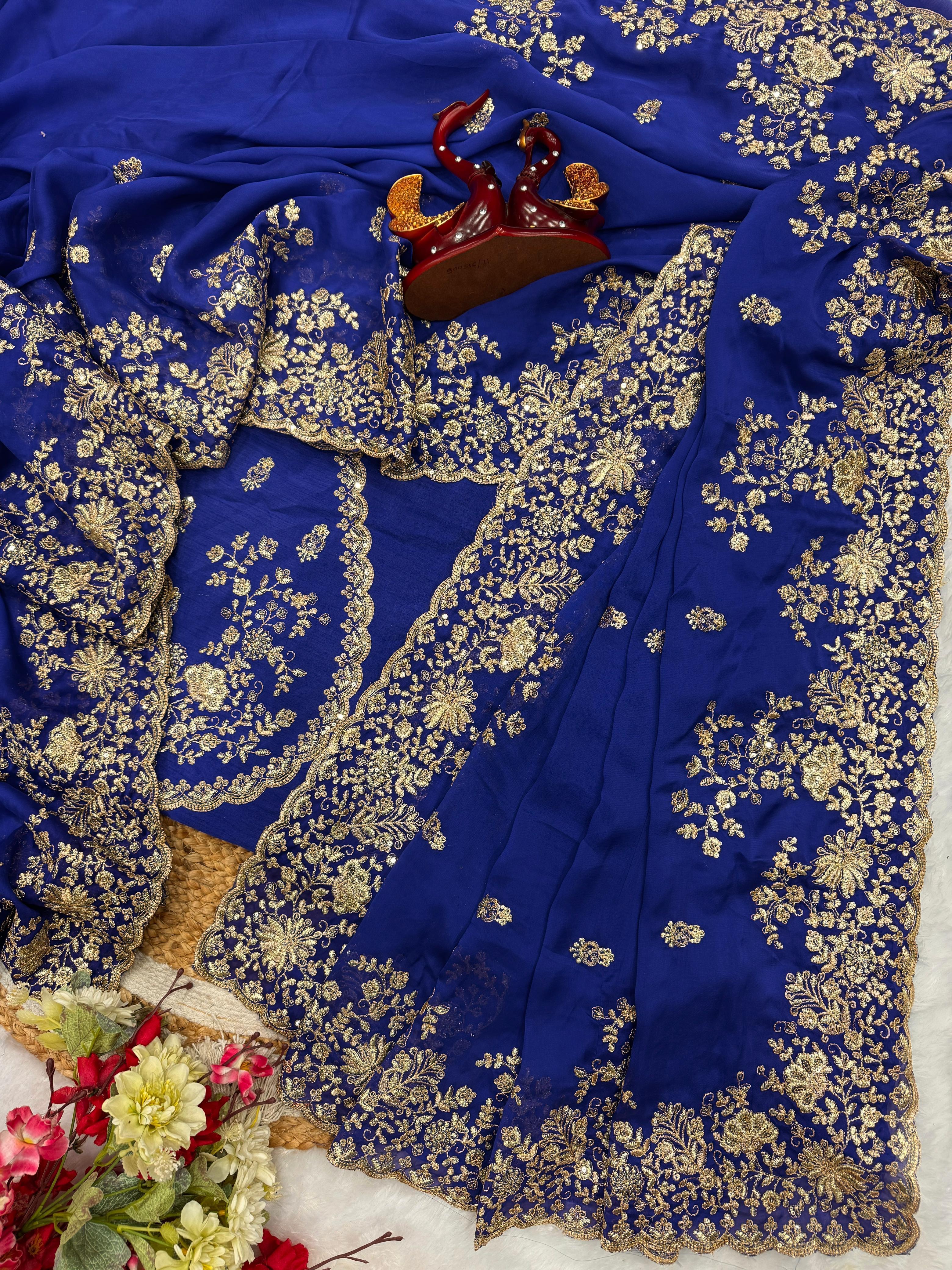 *😍Exuding grace and sophistication, this Sequins work embroidered saree blends classic beauty with modern elegance. Each delicate petal in the design tells a story of timeless charm, making it the perfect choice for those who appreciate both tradition and contemporary style.*