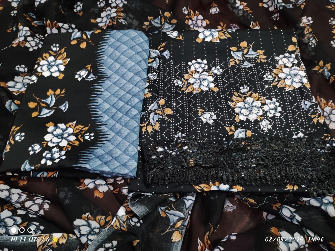 Powder silk shalwar With shawl 2mtr cut shalwer