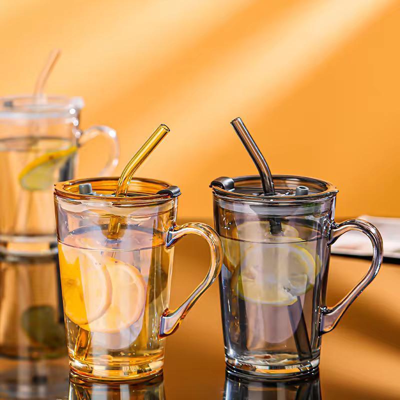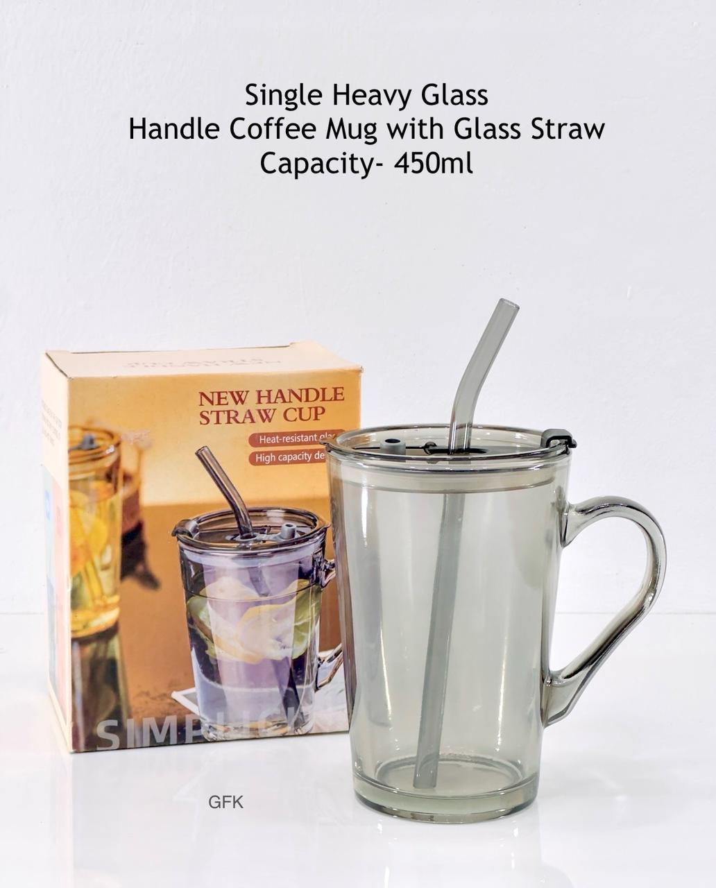 SINGLE HEAVY GLASS HANDLE COFFEE MUG WITH GLASS STRAW 🧃