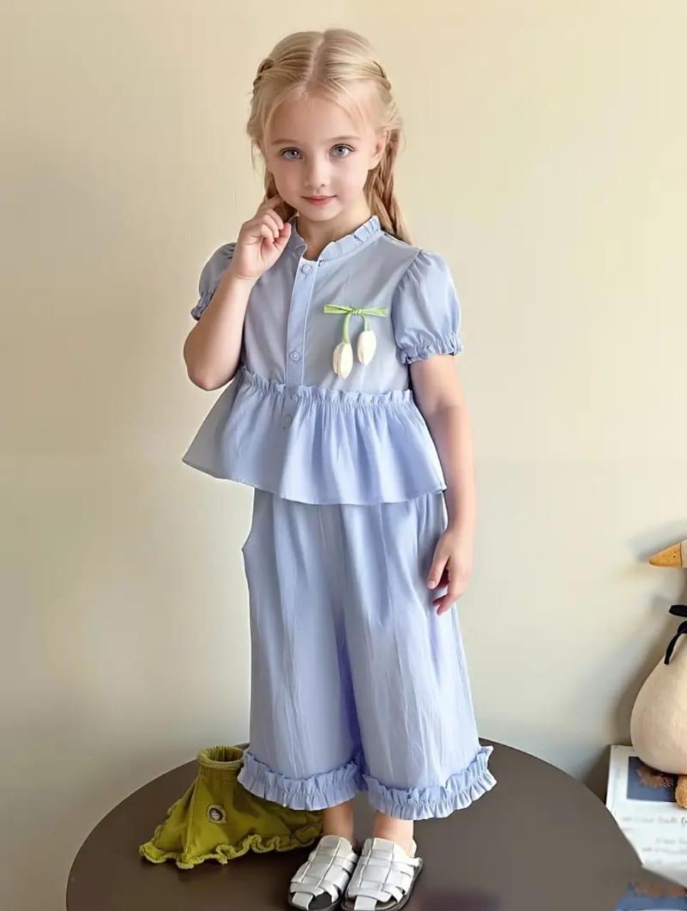 *TULIP BOWKNOT LACE STRAIGHT PANT WITH PUFF SLEEVES SET*